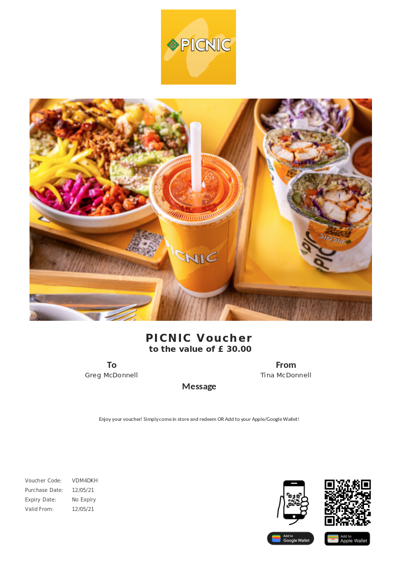 PICNIC allows you to purchase instantly printable gift vouchers, special offers and tickets using the Voucher Connect platform.